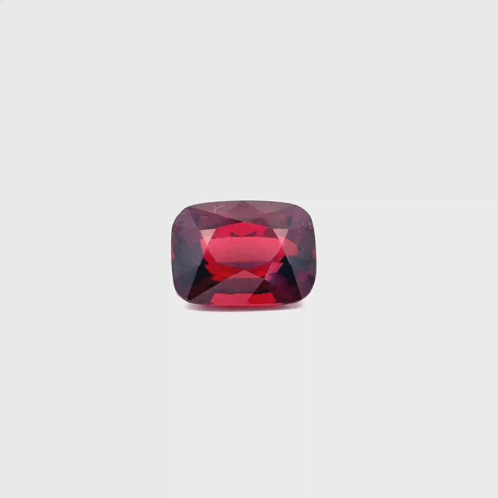 This cushion Rhodolite Garnet stands out with its rich, raspberry-red hue and exceptional natural brilliance. Its vibrant color is deep yet lively, with flashes of rose and wine tones that shift beautifully in the light. Expertly cut to enhance sparkle and depth, this gem carries a refined elegance that’s perfect for both modern and classic designs. Durable enough for everyday wear and unique enough to turn heads, it’s an ideal choice for a standout stone. Sophisticated, vibrant, and undeniably striking—this garnet makes a statement without trying too hard.